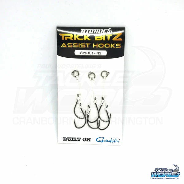Atomic Assist hooks are perfect for anglers looking to customize their lures. They are suitable as an upgrade to any lure, particularly surface lures and feature strong nickel plated hooks and secure split rings.