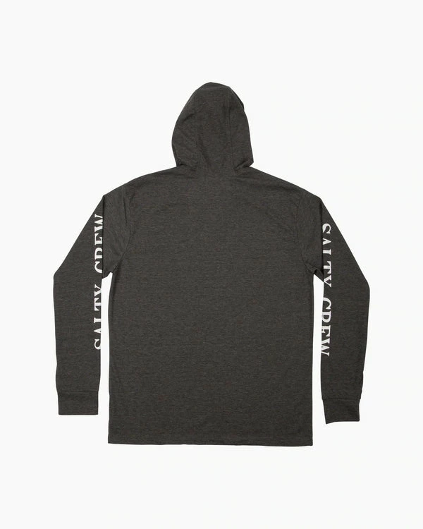 The deckhand Hood Tech Tee, with UPF 40 sun protection. Screen printed sleeves, drawcord hood and Salty Crew woven label on the chest. Made fromΒ 38% Polyester / 31% Recycled Polyester / 31% Cotton.