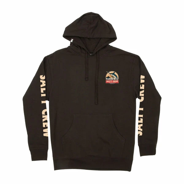 Deep Drop Fleece. Mid weight drawcord hoodie made from 80% cotton and 20% polyester. Featuring kangaroo front pocket and custom Salty Crew screen print on Front, back and sleeves.