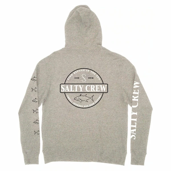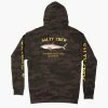 The Deep Sea Zip Fleece is a men’s zip-up midweight hooded fleece with kangaroo pouch pocket and draw cord hood. Featuring custom Salty Crew screen printed graphics on the front, back, and sleeves. Made from 80% cotton and 20% polyester.