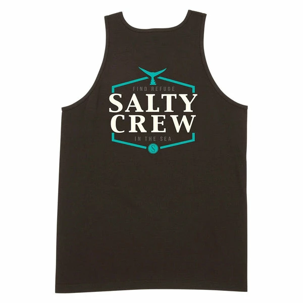 TheΒ Skipjack TankΒ inΒ BlackΒ is a men’s tank top withΒ Salty Crew graphic screen printed front and back . Made from 100% cotton.Β
