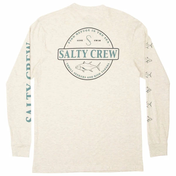 The Deep Sea Premium L/S Tee is a men’s long sleeve t-shirt with screen printed front, back, and sleeves with custom Salty Crew design. Made from 100% cotton.