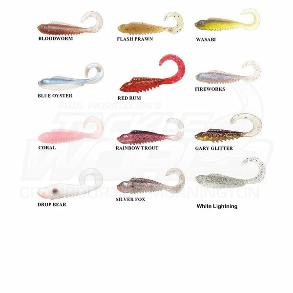 One of the three original Squidgy tail designs, our Wriggler is an important variation on the deadly but traditional curly-tailed grubs of the past. Combining a finer tail for very fast vibrations and belly flaps to create both a distinctive sonic presence and the impression of legs, no other soft plastic on the market today so closely mimics the swimming action of uniquely Australian marine worms, shrimps, prawns and other invertebrates quite like the Squidgy Wriggler, making this our ultimate “finesse plastic”… No wonder the Squidgy Wriggler continues to smash sales records; season after season!