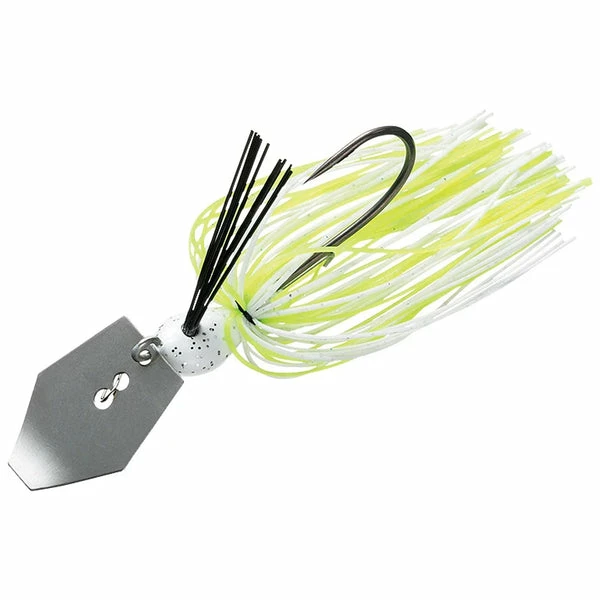 A thin fibre weed guard helps resist snagging, allowing anglers to fish a vibrating jig in thick cover and vegetation. A hand tied skirt means there is no rubber band to deteriorate over time, allowing your skirt to stay perfectly aligned for the life of the lure. A SaqSas hook aids in turning timid bites into solid hook-ups. Steez Cover Chatters are available in 1/4oz and 3/8oz sizes.
