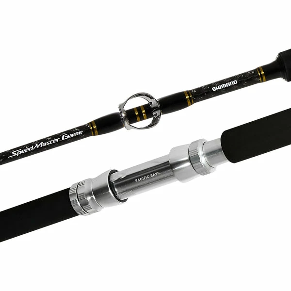 The new Speedmaster game series utilises Shimano’s strong and lightweight TC4 blank technology to deliver a dependable tournament game fishing and deep drop line-up. Quality Fuji SiC guides with an AFTCO Roller Tip provides control and preserves the performance of your line during the fight and ensures you keep the upper hand against whatever you may hook. To guarantee your favourite Shimano game reel fits perfectly to the rod, an aluminium Pac Bay reel seat and channel lock butt is used for the ultimate in strength and durability. This is especially important as the strength and rigidity of your outfit will be upheld when under fighting load. Tested on some of Australiaβs hardest fighting game fish, the Speedmaster Game series covers 5 models across 15-, 24- and 37kg line classes for trolling and livebaiting, including a dedicated 7′ 24kg land based game (LBG) rod and a 5’6″ PE 8-10 deep drop rod.