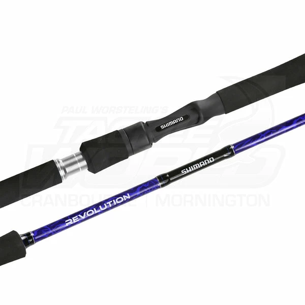 Thhe Shimano Revolutions rods are a wide-ranging series, consisting of light, medium and heavy spin, baitcast, jig, bluewater troll rods β in effect, almost every fishing style available in Australia! The new Revolution models have a new cosmetic with all-new fittings. Using Fuji O Ring guides, which have increased protection for the insert, βSoft Touchβ reel seats for greater comfort during long fishing sessions, which in turn complement the hard-wearing custom-shaped EVA fore and butt grips. Whatβs more, the two-piece rods have delightfully subtle ferruling system that youβd be hard pressed to pick. Utilising Shimanoβs 24-30 Ton Toray graphite, the blanks the new Revolutions are built on combine casting performance β where applicable β with incredible lifting and fish fighting power.